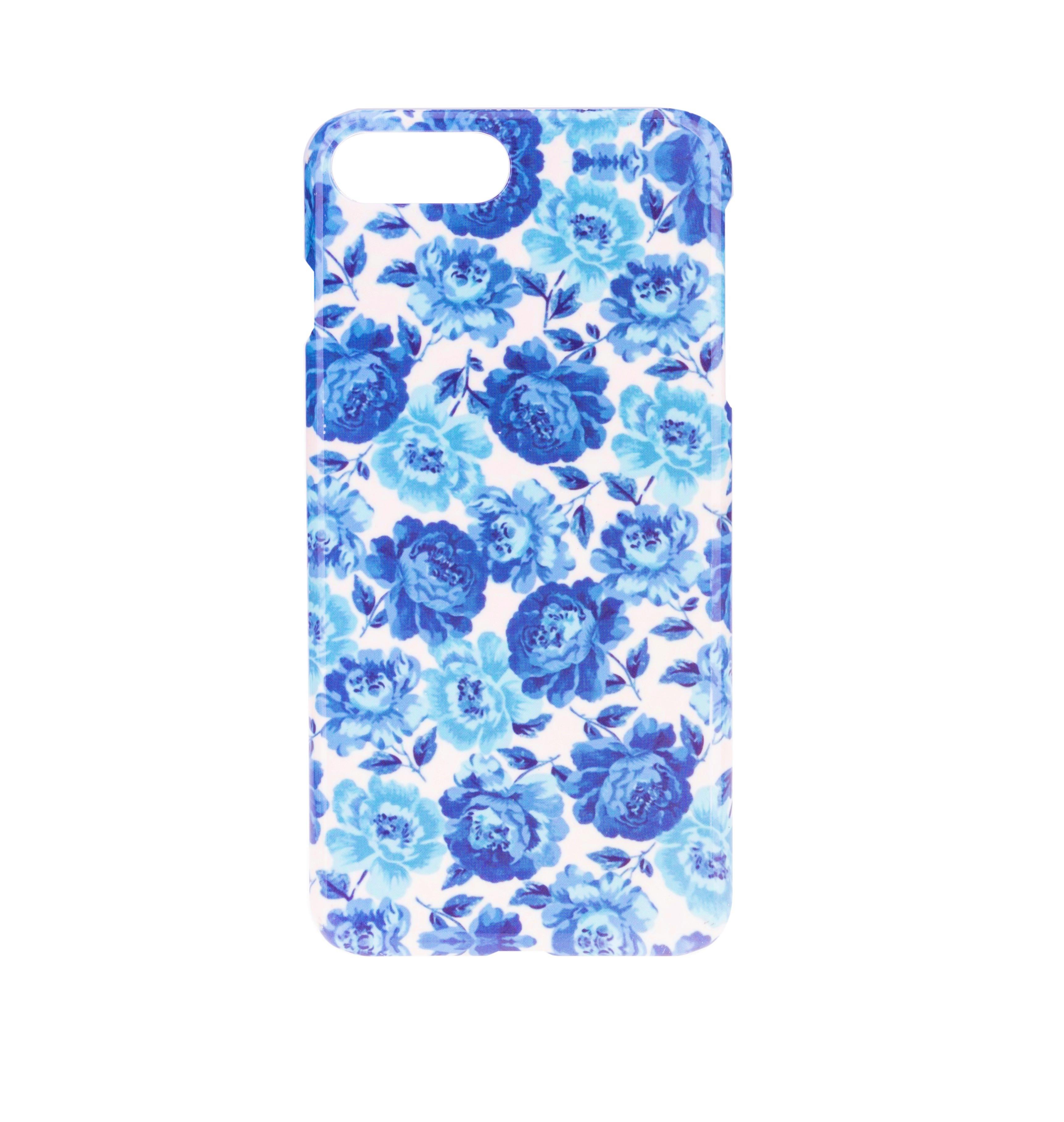 Detta mobilskal med härligt mönster av blå rosor passar iPhone 7 och iPhone 8 (inte plus-modell).