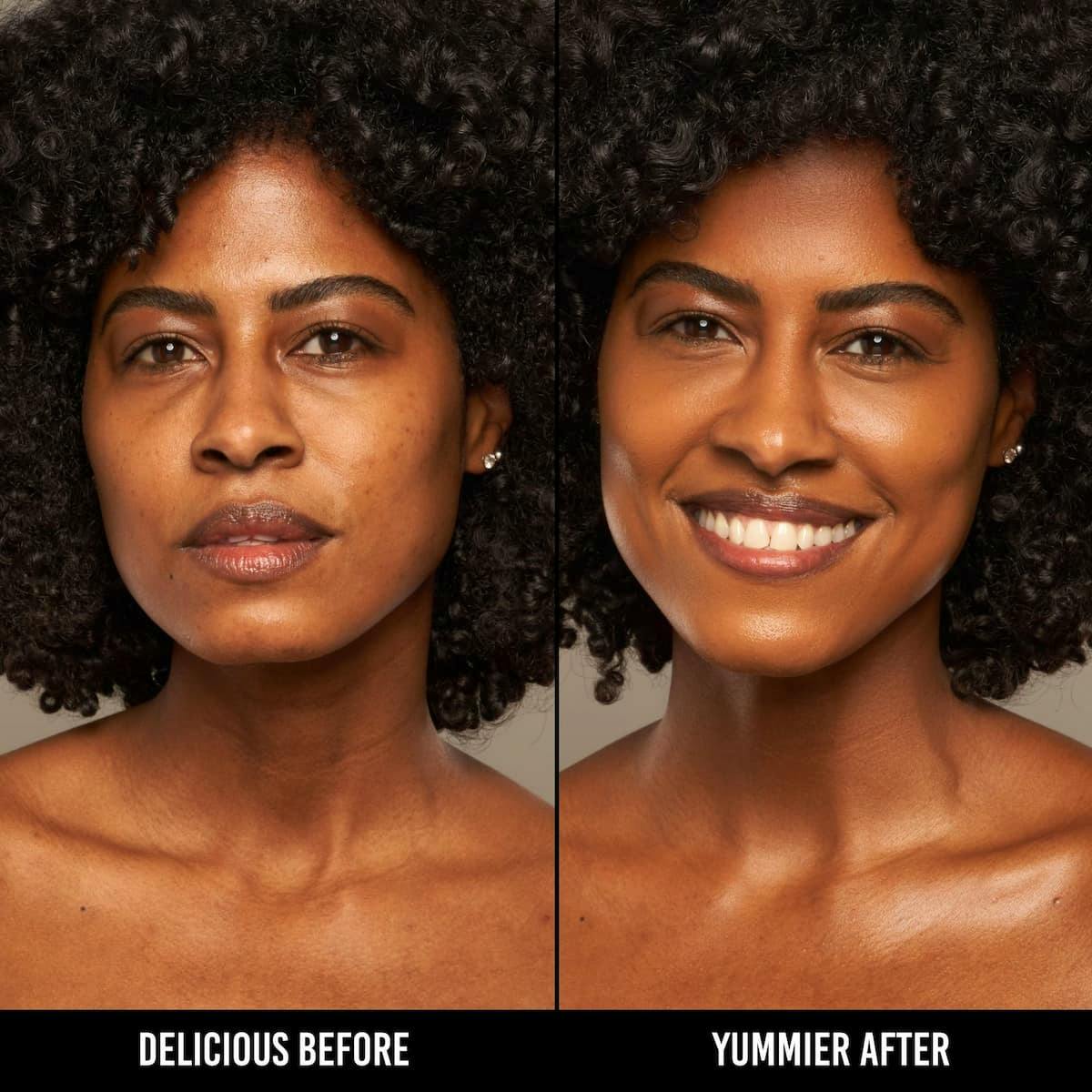 Denna lätta, hybridfoundation innehåller ingredienser som är kända för att balansera fukt och återfukta huden samtidigt som den skyddar med antioxidanter som bekämpar fria radikaler. Denna närande formula tar itu med vanliga hudproblem för en bekväm användning varje dag. Förpackningen är påfyllningsbar (påfyllning säljs separat). Flytande formula Medium täckning som kan byggas upp Strålande finish Vegansk & ren Innehåller hyaluronsyra, antioxidanter och hudvänliga oljor Fri från parabener, sulfater och är inte testad på djur Bra för Hyperpigmentering Torrhet Mörka ringar Ojämn textur Fina linjer + rynkor Balansering av sebum Hudtyper: Torr | Fet | Kombinerad | Normal | Aknebenägen | Känslig | Mogen För lätt täckning: Pressa ut en ärtstor mängd och applicera jämnt med fingrar, borste eller svamp. För medium täckning: Pressa ut två ärtstora mängder och applicera jämnt med en borste eller svamp. Proffstips: Börja från ansiktets mitt och blanda utåt för en jämn applicering. Lägg ett lager över Yummy Skin Glow Serum för extra lyster och en hälsosam, strålande hy. Ytterligare information: När du har använt sista droppen, skruva loss den tomma patronen från flaskans bas och dispenserlock. Packa upp en ny påfyllningspatron och ta bort både locket och skyddsförseglingen. Skruva fast den nya påfyllningspatronen i flaskans bas och dispenserlock. Fortsätt använda genom att pressa patronen tills produkten kommer ut. Jojobaolja återfuktar och mjukar upp huden på djupet Hyaluronsyra återfuktar och fyller ut fina linjer och rynkor Olivderiverad skvalen är känd för att balansera oljeproduktionen och har synliga anti-aging egenskaper.