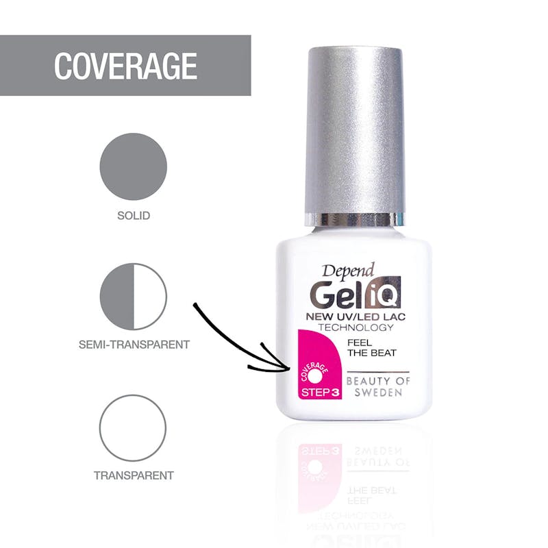 Gel iQ Beach, Please! från Depend är ett elegant gelnagellack som ger en högblank yta med en unik fyllighet som skiljer sig från vanliga nagellack.