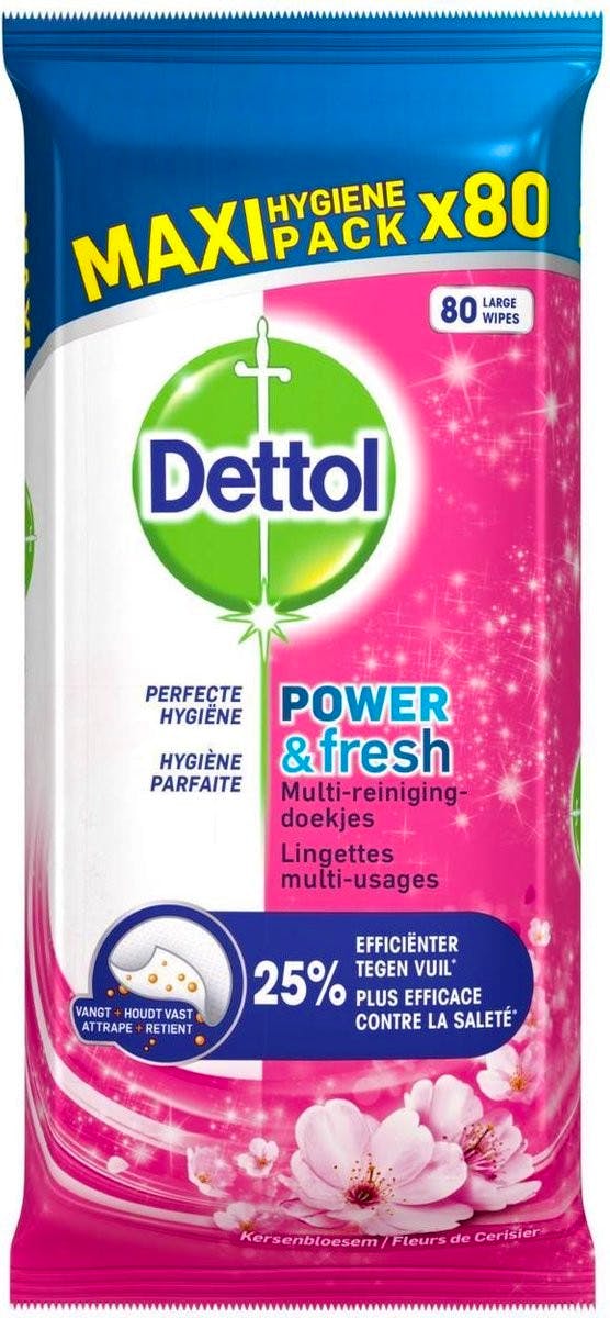 Dettol Power & Fresh Cherry Blossom Disinfectant Antibacterial Wipes Maxi Pack