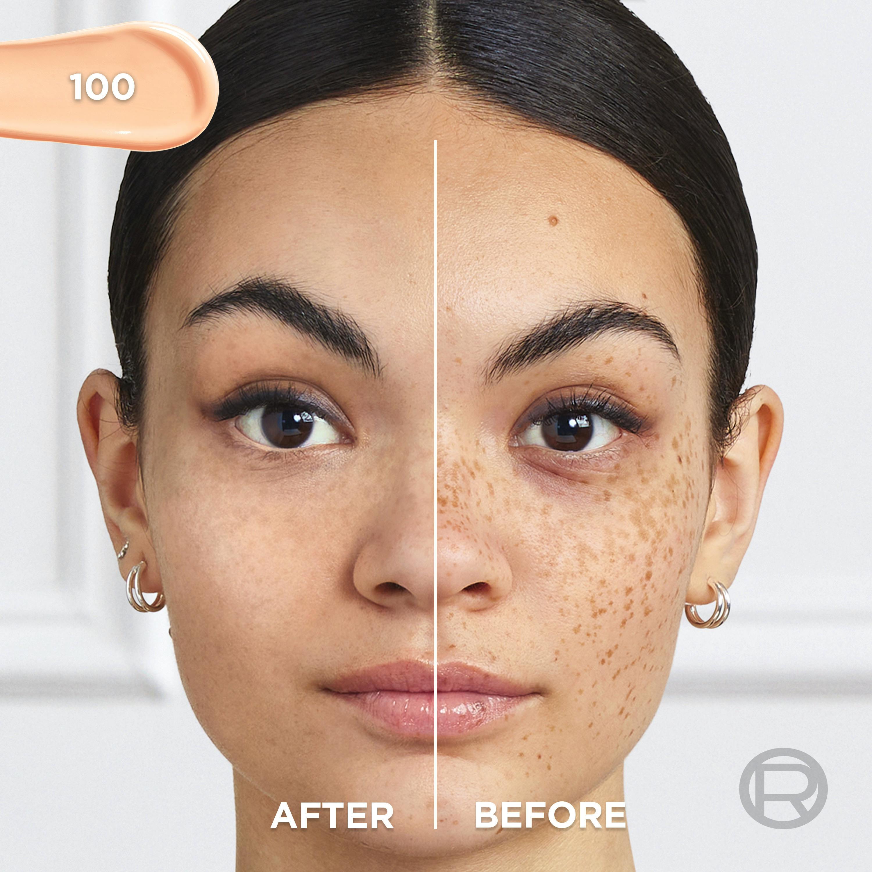 och har en flytande formula som sitter där den ska. Svettresistent, vattenfast och berikad med vitamin Cg för att boosta hudens lyster. Mikropärlor i formulan sprider ljus och ger en strålande finish som inte blir blank och håller hela dagen.