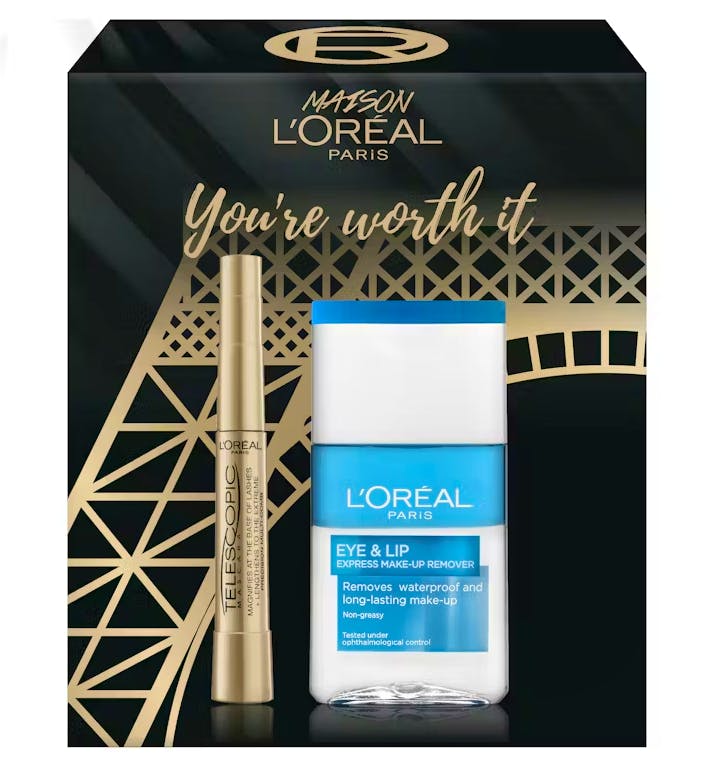Upptäck den perfekta julasken för en fantastisk festlook. The Complete Duo från L'Oréal Paris innehåller den ikoniska Telescopic Mascara i svart och Eye & Lip Express Makeup Remover för ögon och läppar.