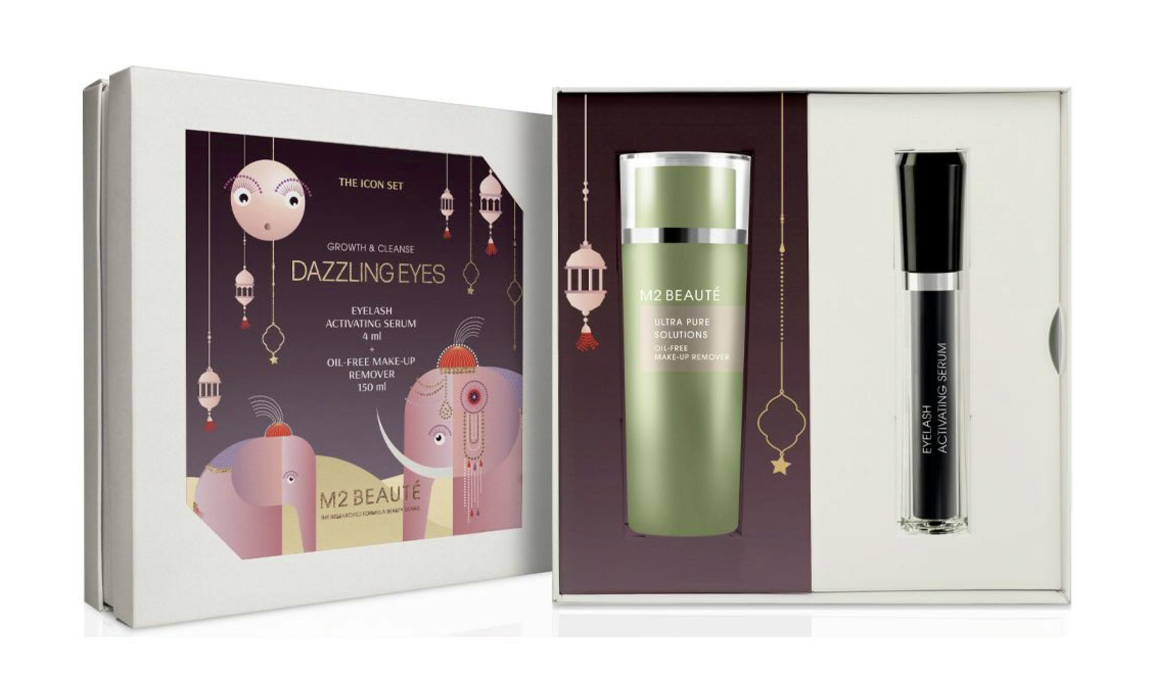Eyelash Activating Serum & Oil-Free Make-Up Remover Presentset från M2 Beauté är den perfekta uppsättningen för att vårda och rengöra dina ögon.