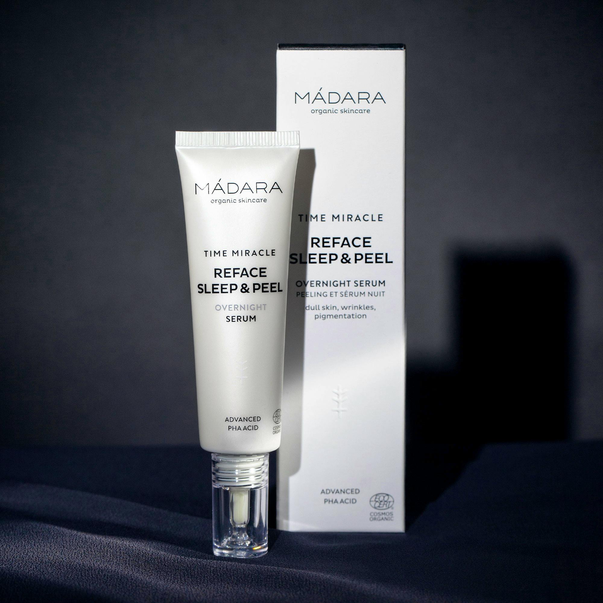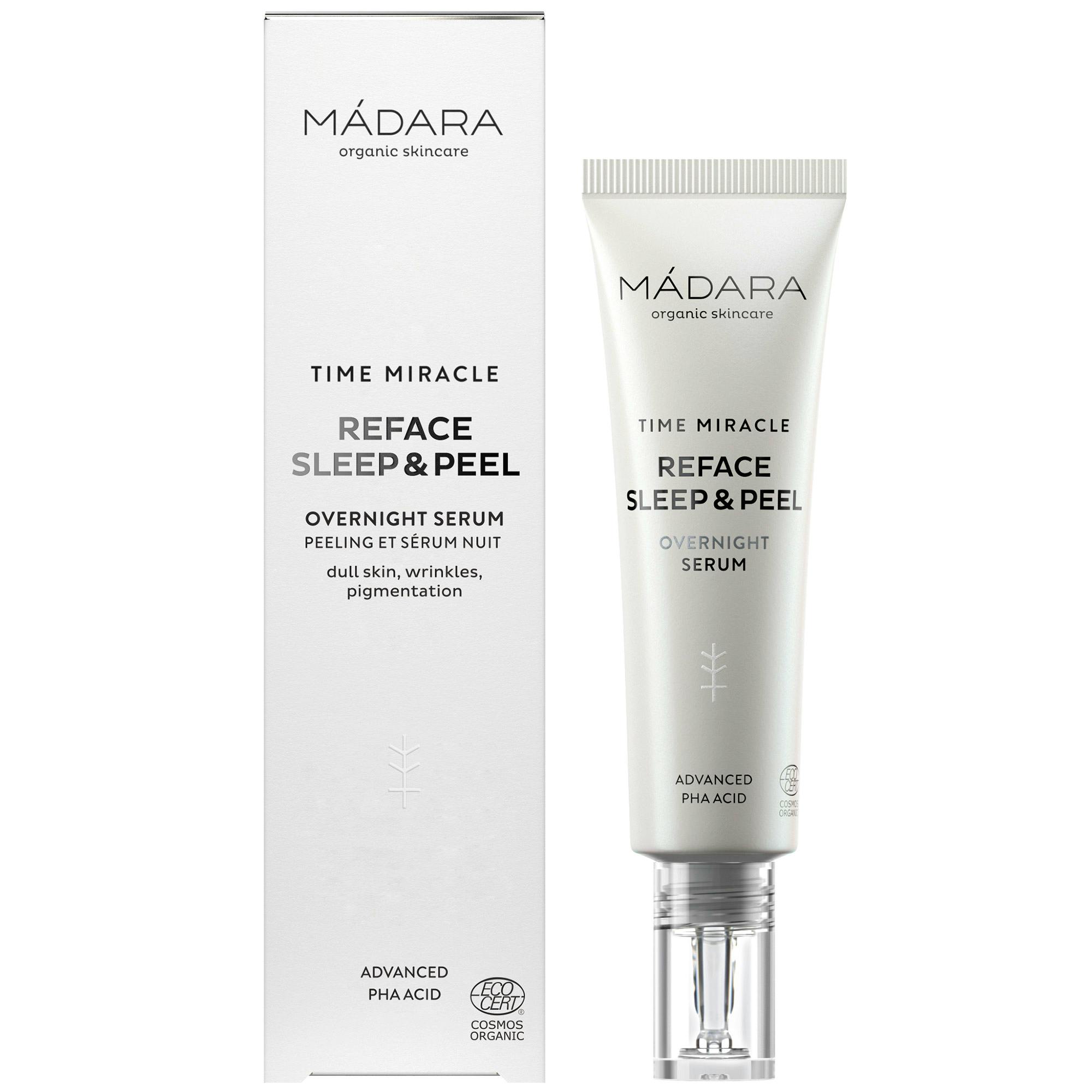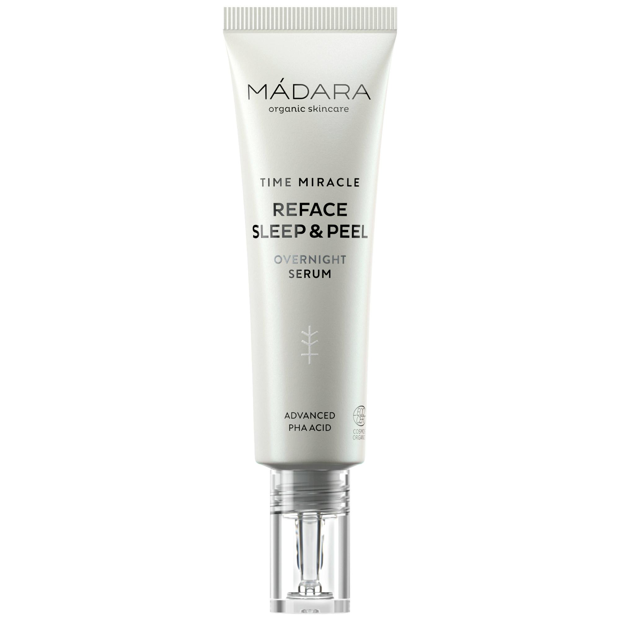 Time Miracle Reface Sleep&Peel Overnight Serum från MÁDARA är en innovativ skönhetsprodukt som är designad för att ge dig en förnyad och strålande hud.