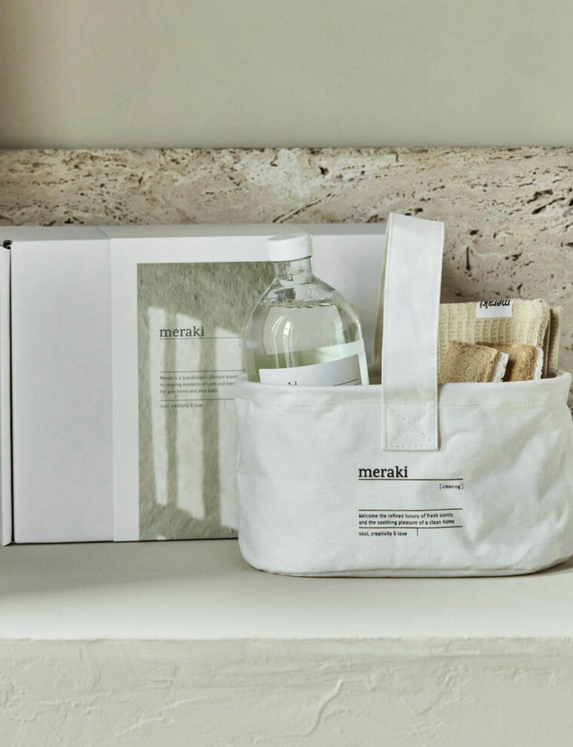 Meraki Gift Box w. Basket, Dish Cloth, Sponge & All-round Cleaning,