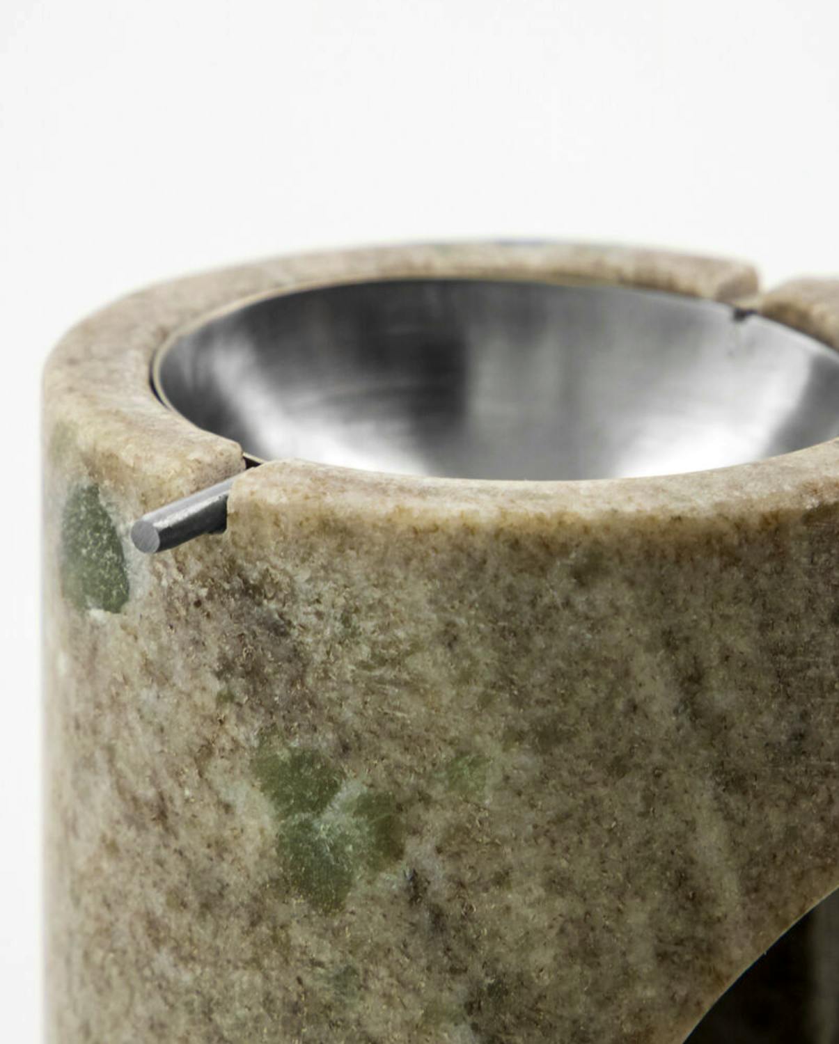 Skapa en lugn och väldoftande atmosfär med den här oljebrännaren i marmor med en kontrasterade metalldetalj.