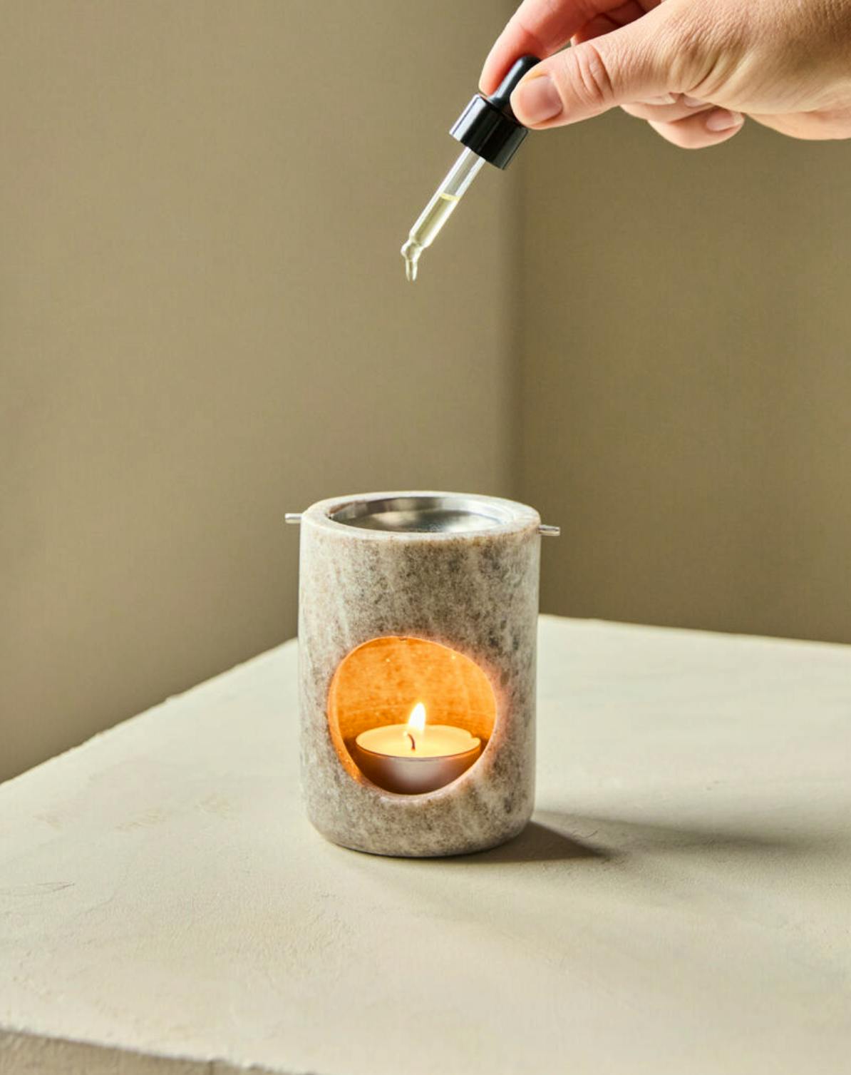 Meraki Oil Burner Marble Beige Silver Finish