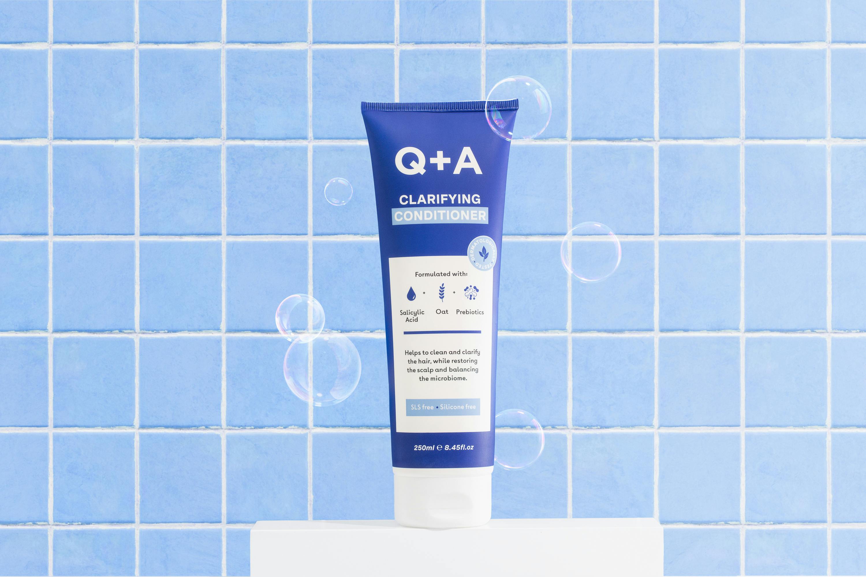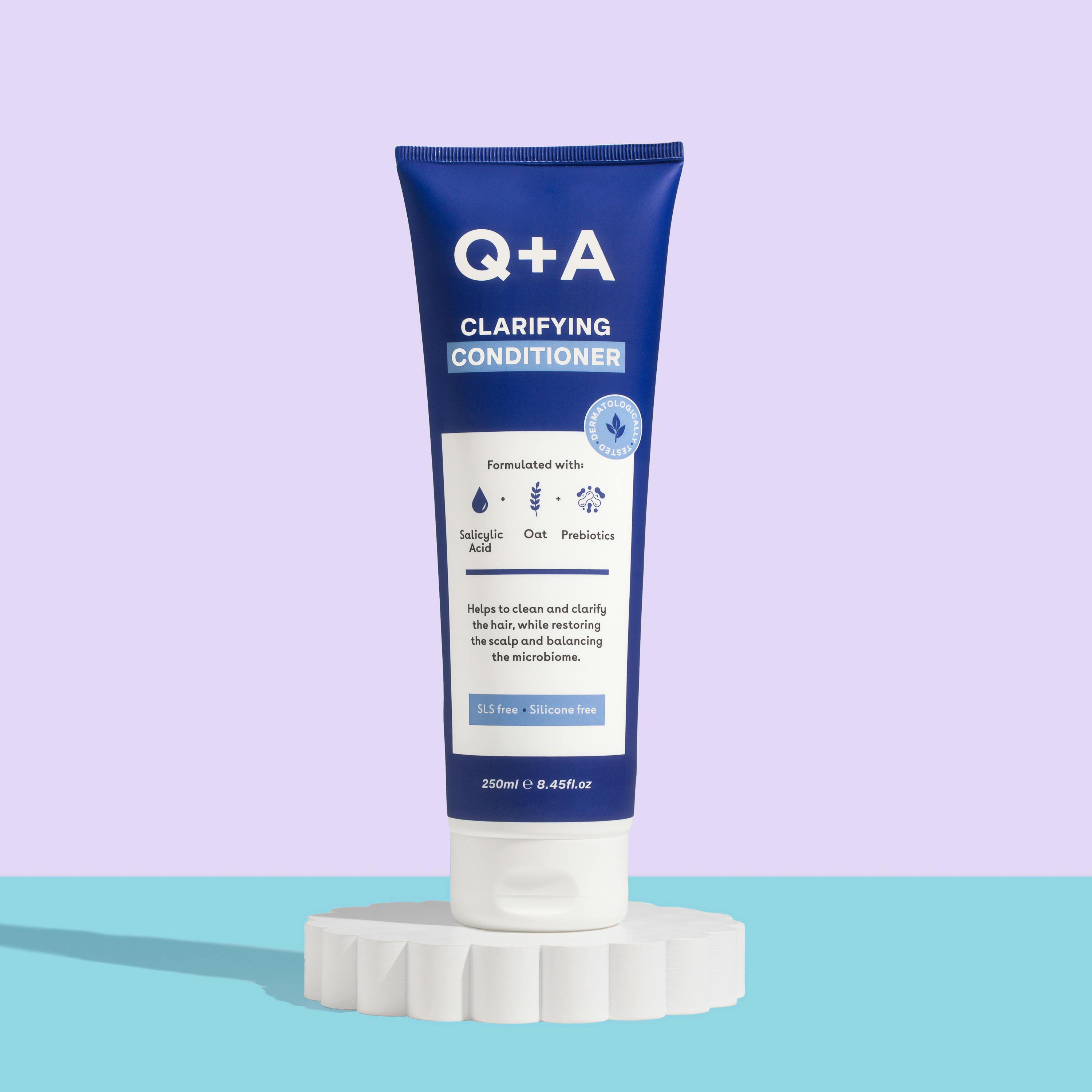 Clarifying Conditioner från Q+A är ett rengörande balsam som arbetar för att ge nytt liv till tråkigt och tyngt hår, med ett hälsosamt och glänsande resultat. Formulerad med salicylsyra, havre och prebiotika för att ge hår, hårrötter och hårbotten en djuprengöring, samtidigt som den återställer och återfuktar håret. Balsamet använder de naturliga exfolierande egenskaperna hos salicylsyra med de lugnande och balanserande fördelarna med havre. Den är designad för att förhindra produktuppbyggnad och lugna hårbottens känsliga mikrobiom. Tillsammans med prebiotika får hår och hårbotten näring som främjar friskt och glänsande hår.