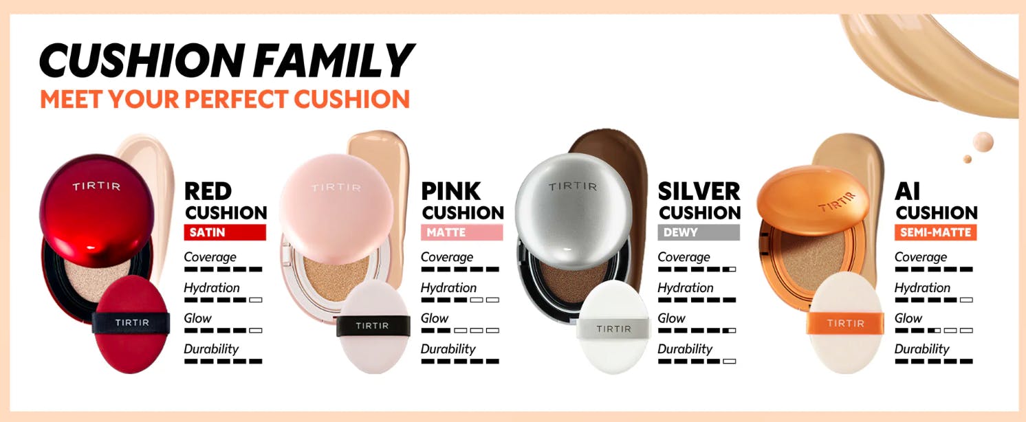Applicera TIRTIR Mask Fit AI Filter Cushion med puffen. Klappa jämnt över ansiktet och bygg upp täckning vid behov.
