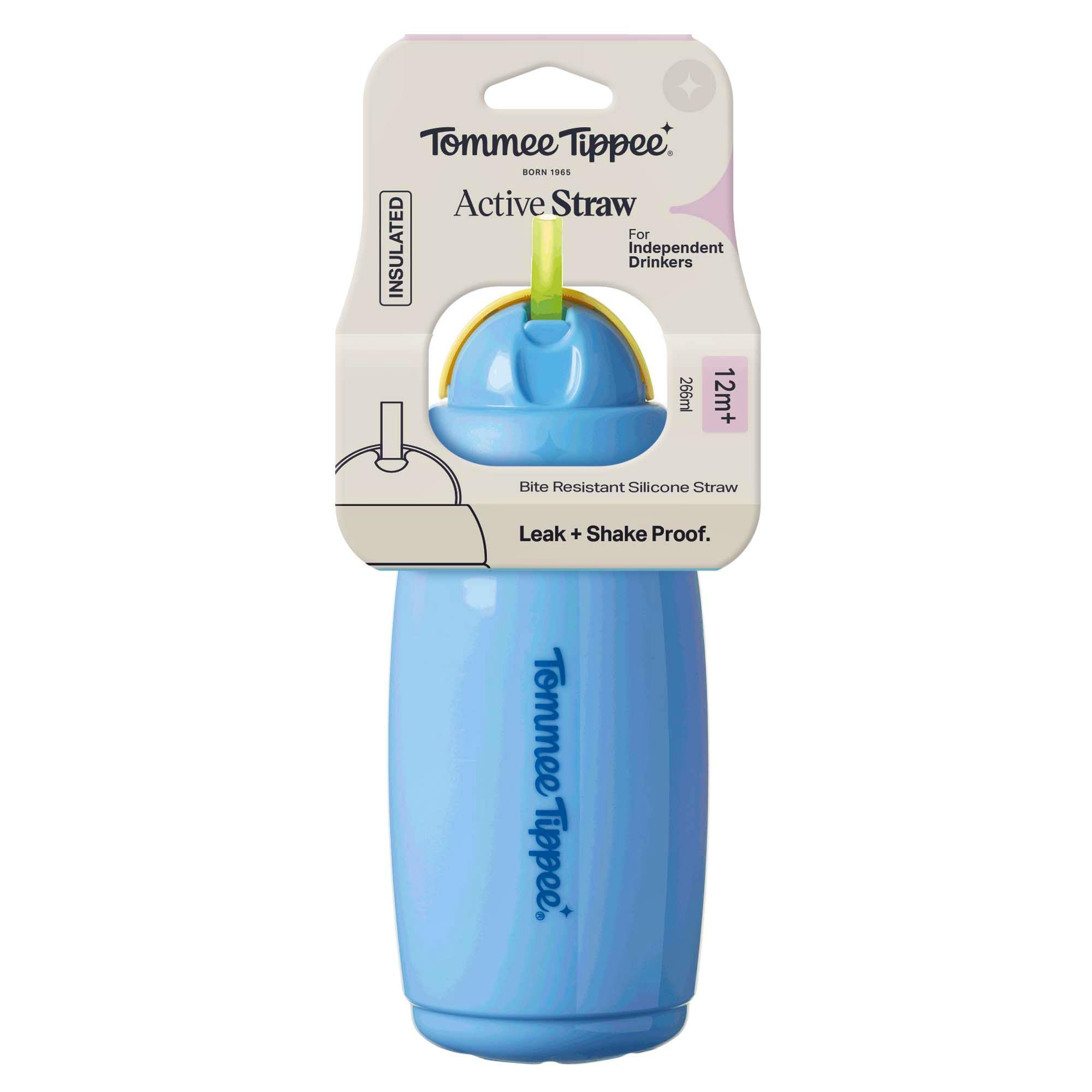 Tommee Tippee Drinking Bottle With Straw +12M Blue är en noggrant utformad flaska som passar perfekt för aktiva barn från 12 månader och uppåt.