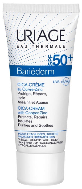 Bariederm Cica Creme SPF50 från Uriage är en intensiv kräm som är perfekt för att vårda och skydda din hud.